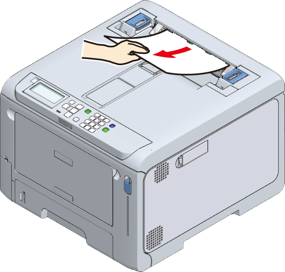 Fjern det fastklemte papir fra udskriftsudgangen.