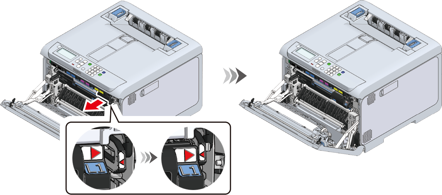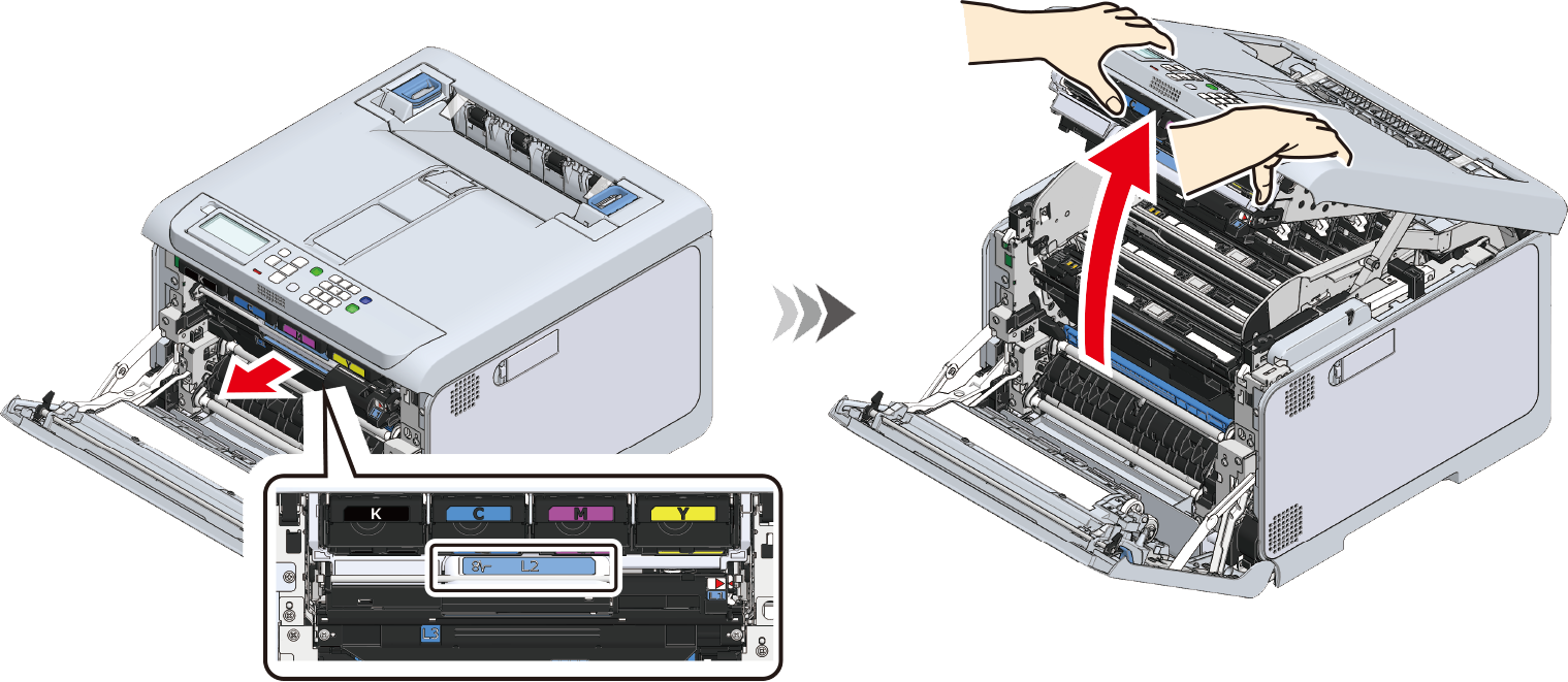 Tag fat i L3-håndtaget, og træk billedtromlekurven ud, indtil den stopper.