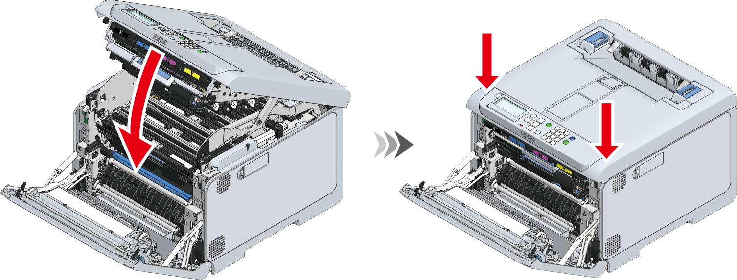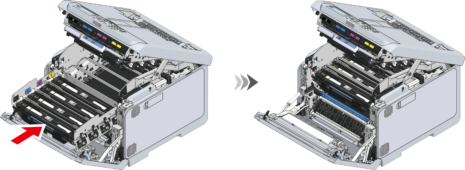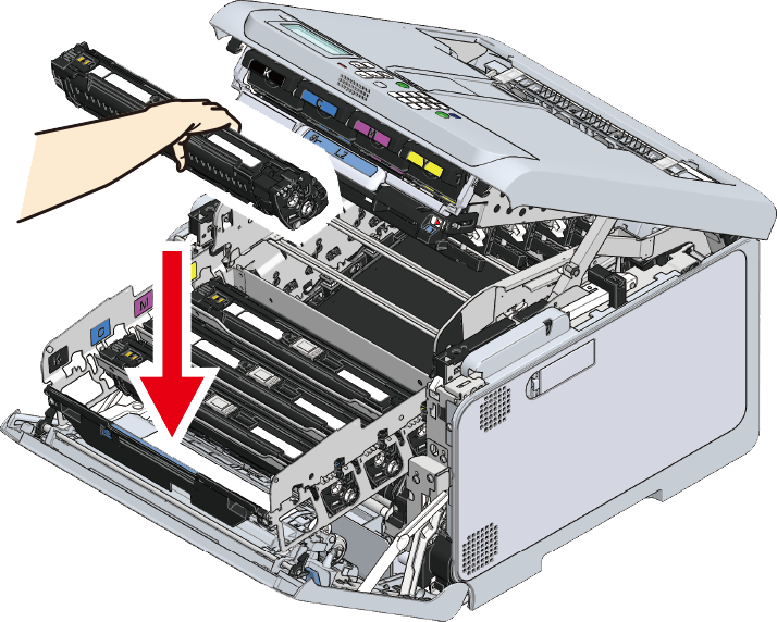 - Hvis billedtromlen ikke er installeret korrekt, kan billedetromlekurven ikke skubbes helt ind.