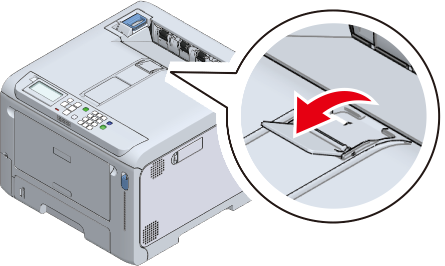 - Kontroller, at den bagerste udskriftsbakke på bagsiden af maskinen er lukket. Når den bagerste udskriftsbakke er åben, lægges papiret altid i den bagerste udskriftsbakke.