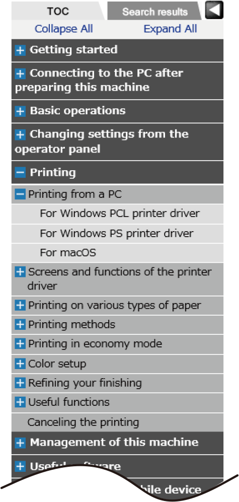 Klik på [+] for at få vist emnetitlen på det lavere niveau.