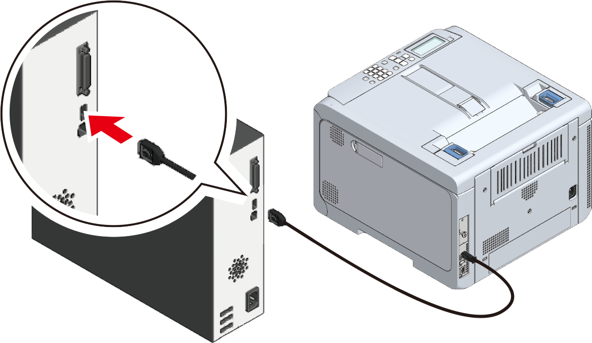 Tilslut denne maskine og en pc med et USB-kabel for at udskrive.