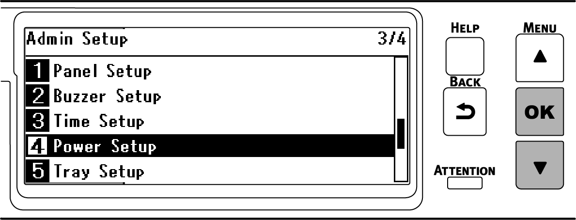 Opakovaným stiskem ▼ vyberte položku [Power Setup (Nastaveni napajeni)] a stiskněte «OK».
