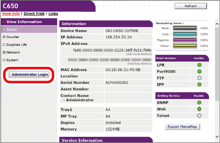 Kliknij [Administrator Login (Login administratora)].