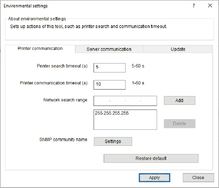 网络搜索范围 | 指定打印机的搜索范围。 |