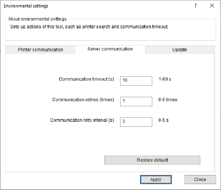 打印机通信超时 | 设置发生打印机连接超时错误的时间限制。 |