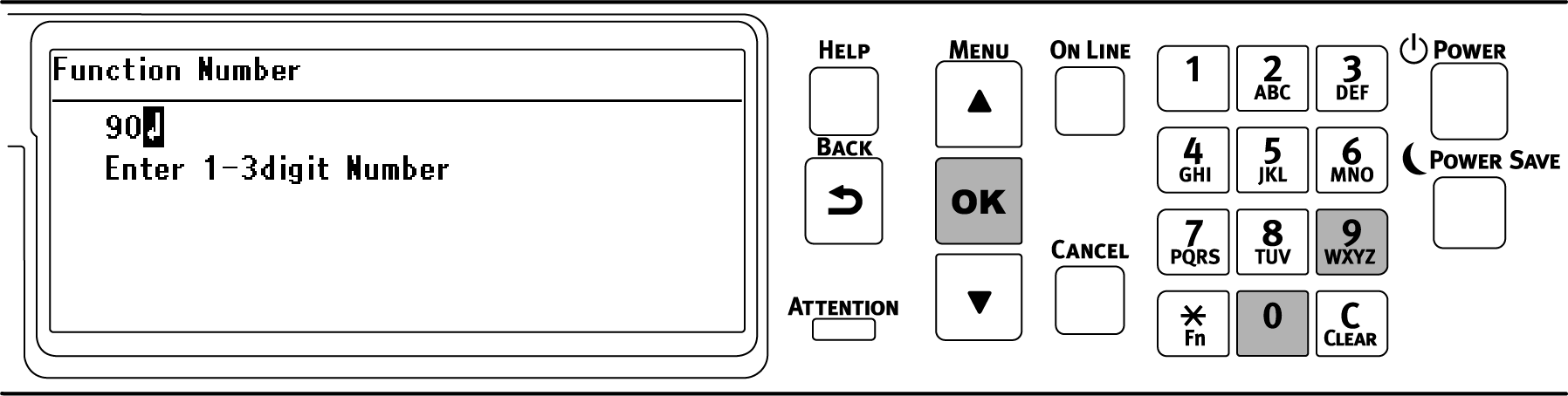 - 如果指定的是未安装的选购件的功能号,将显示 [Invalid Number(无效编号)]。