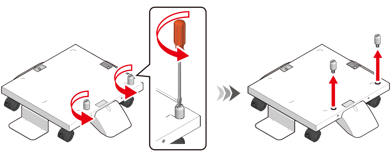 如果安装有选购的扩展纸盒,请使用平头螺丝刀拆下用来固定本设备与扩展纸盒的部件 (x 2)。