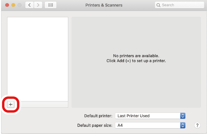 点击 [+],当显示菜单时,选择 [Add Printer or Scanner(添加打印机或扫描仪)]。