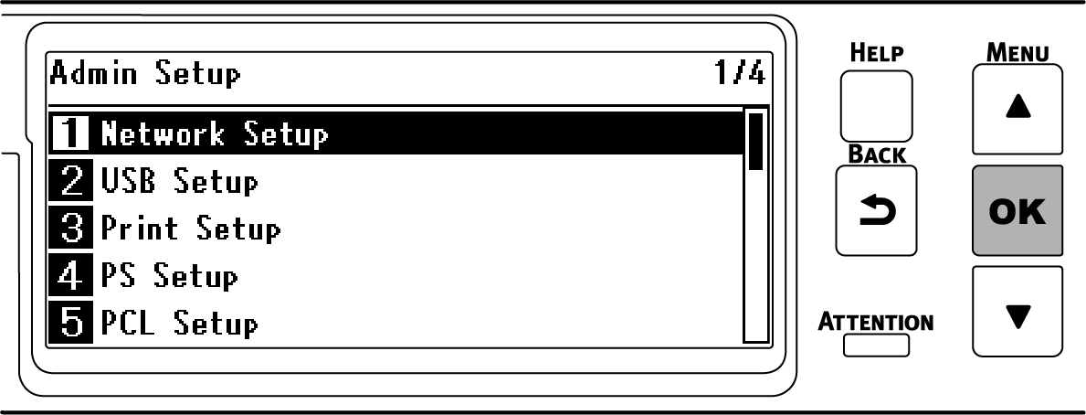 - 反复按操作面板上的滚动按钮 ▼ 选择 [Admin Setup(管理员设置)],然后按 «OK (确定)»。