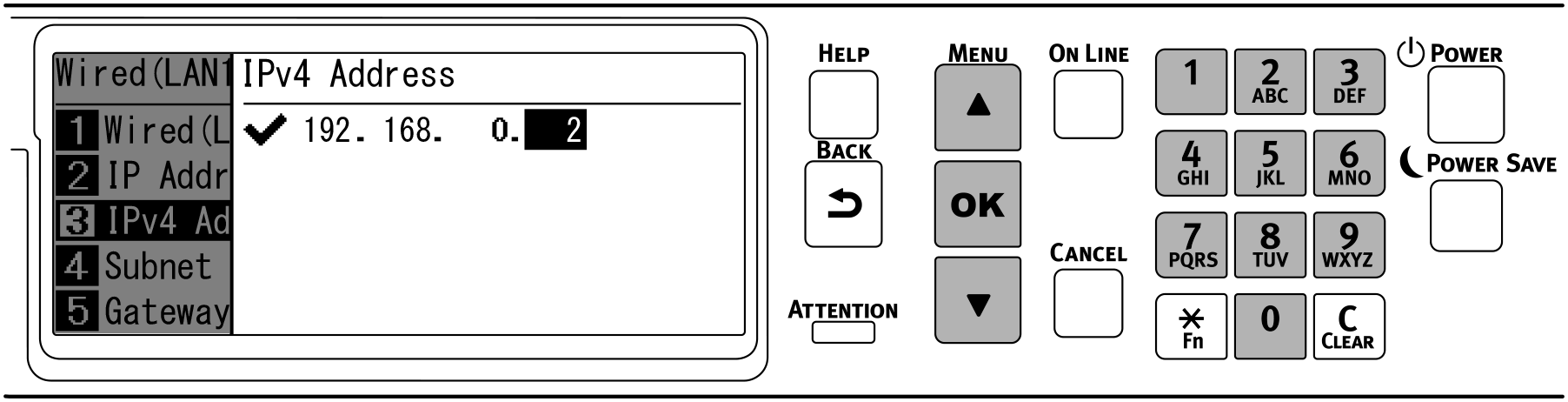 按 ▼ 选择 [IP Address Set(IP 地址设定)],然后按 «OK (确定)»。