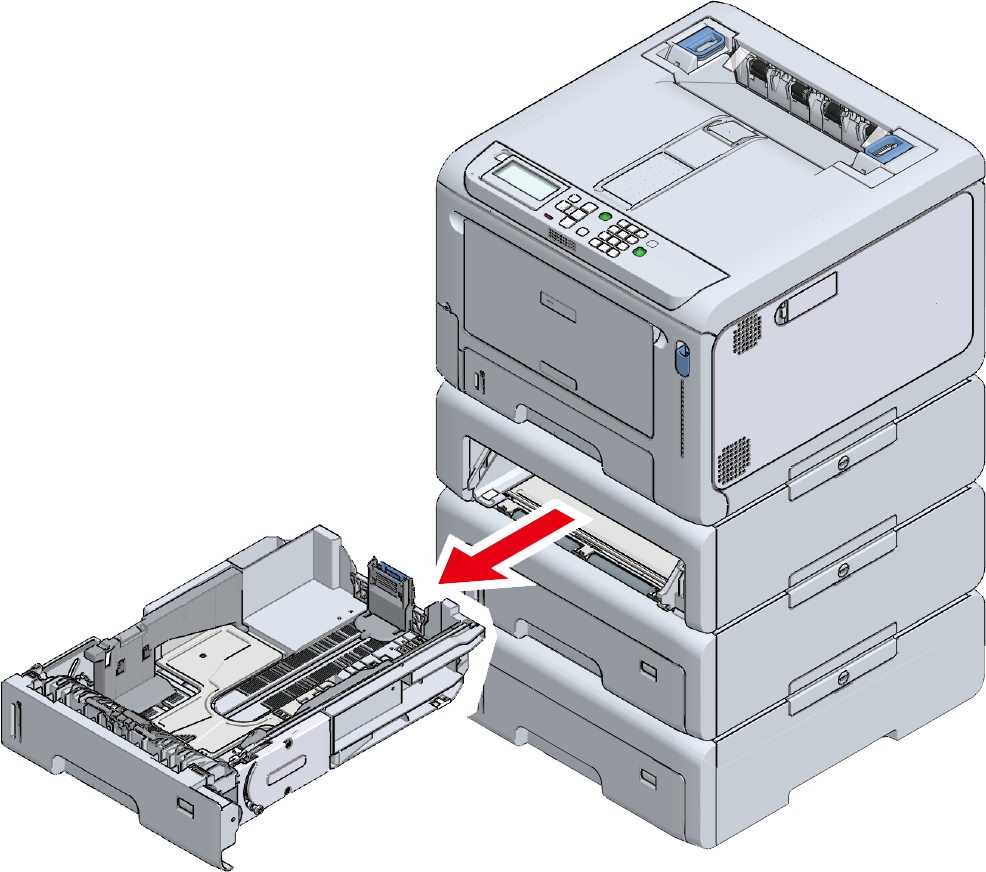 滑动导纸板和挡纸板的蓝色部件,根据要装入的纸张尺寸进行调整。