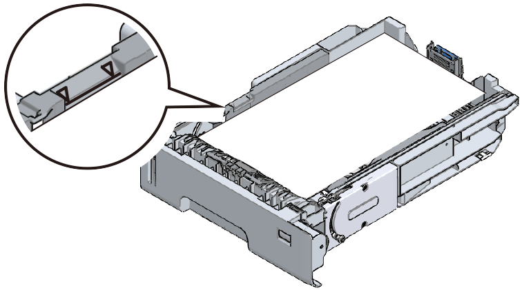 - 装入纸张时,请勿超过导纸板上的 ▽ 标记。