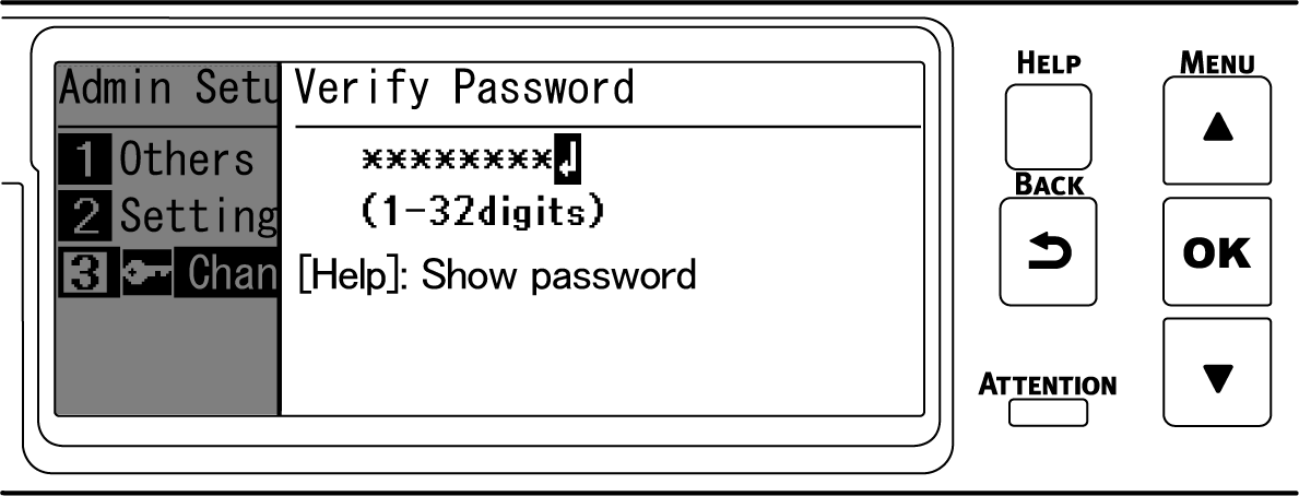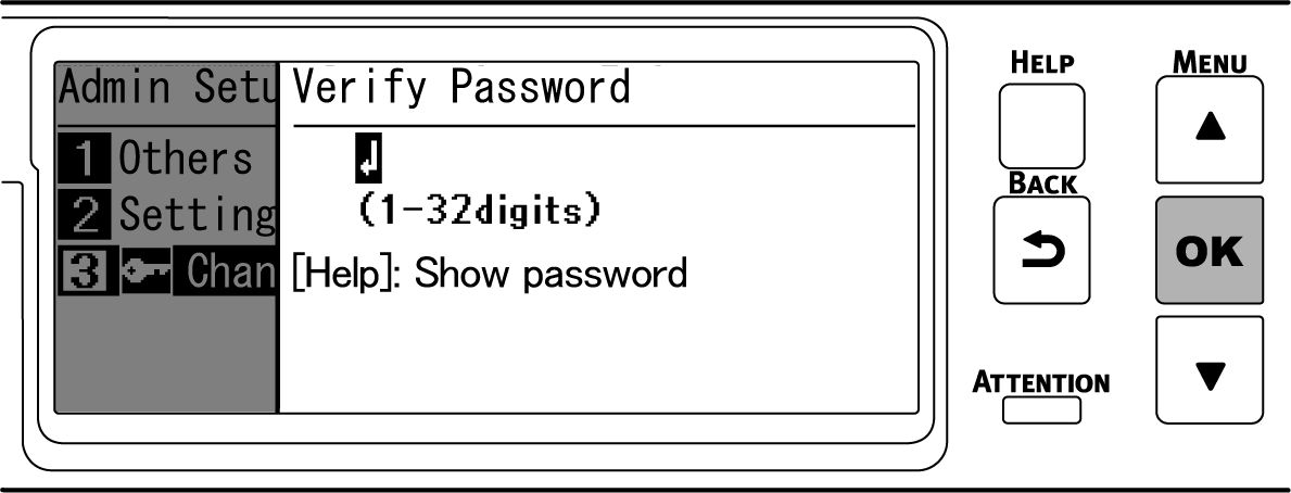 再次按 «OK» 时,密码即被变更,且屏幕返回 [Admin Setup(管理员设置)]。