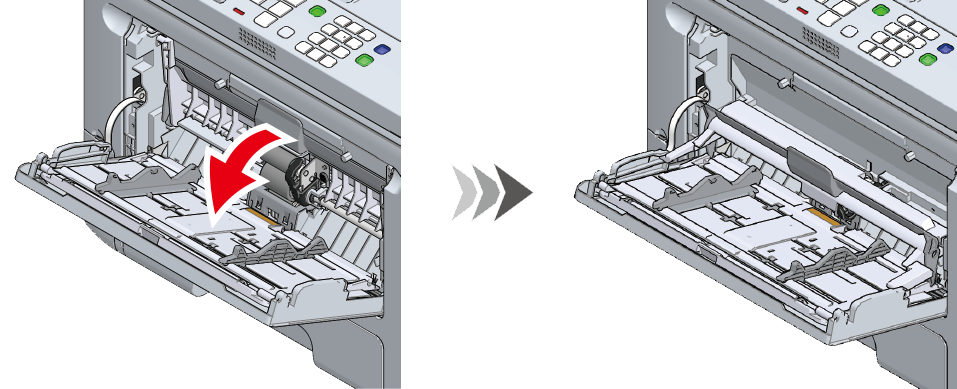 수동 급지 가이드를 바깥쪽으로 밉니다.