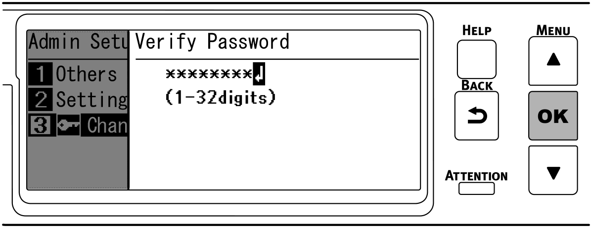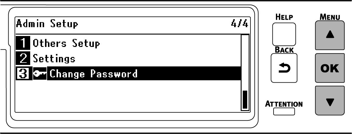 按幾下操作面板上的捲動按鈕 ▲ 或 ▼ 選擇 [Change Password(密碼變更)],然後按下 «OK(確定)»。