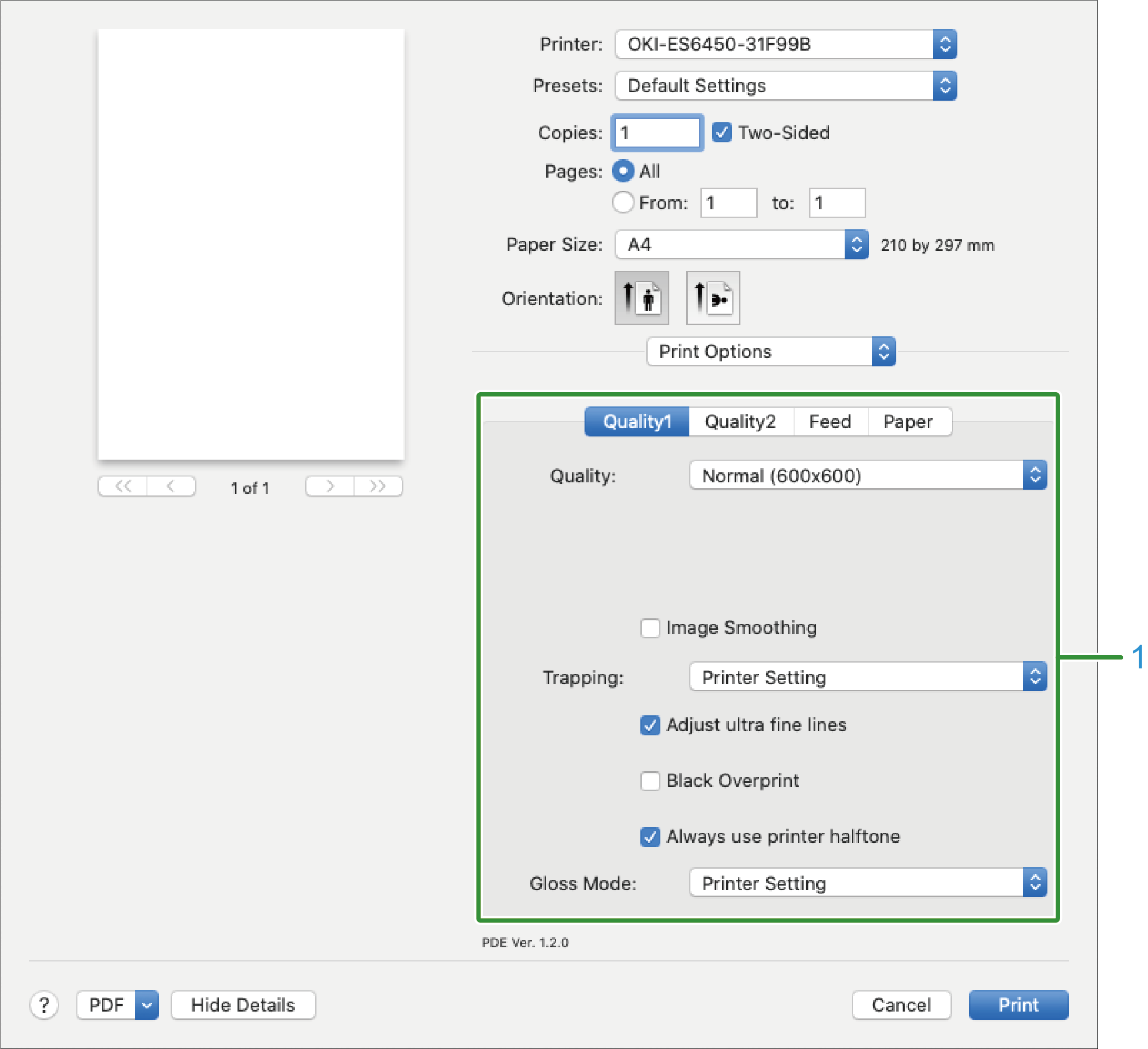 1 | Quality1、Quality2、Feed、Paper | 指定列印品質、省碳模式、紙張類型等等。 |