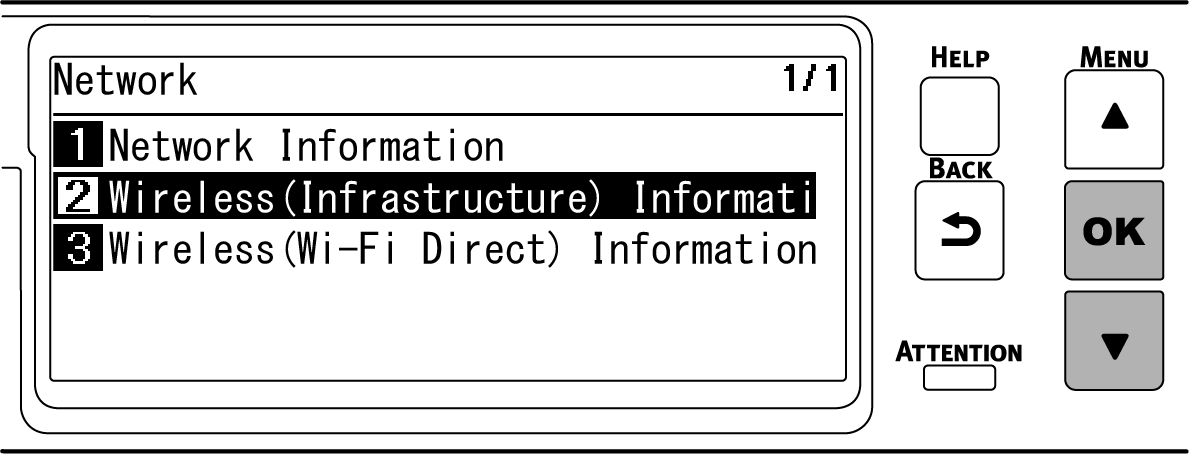 按下 ▼ 選擇 [Wireless(Infrastructure) Information (無線 (基礎架構) 資訊)],然後按下 «OK»。