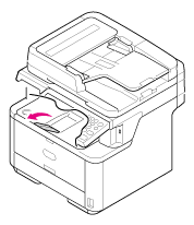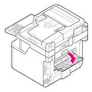 Öffnen Sie die Papierstütze, damit die gedruckten Seiten nicht aus dem Ausgabefach (Schriftseite unten) rutschen.
