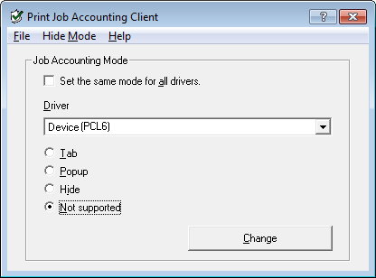 Si utiliza una impresora compartida, no utilice las funciones de uso que establecen todos los controladores de la impresora en el mismo modo. Si hay impresión en el lado de cliente de una impresora compartida, la información de contaduría no se deja salir.