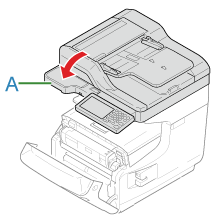 Hold the handle (A) to open the scanner unit.