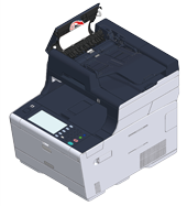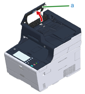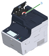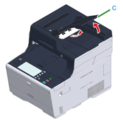 If the edge of document jammed under the document tray (c) can be seen, lift up the document tray and gently pull out the document to remove.