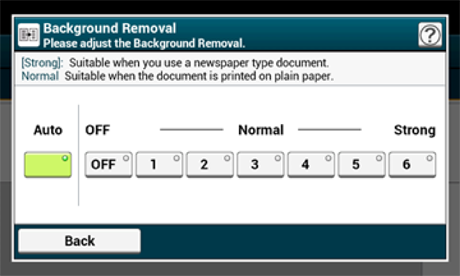 Bei der Auswahl von [Auto] wird der Hintergrung automatisch mit einer Stufe entfernt, die für die meisten Dokumente passend ist.