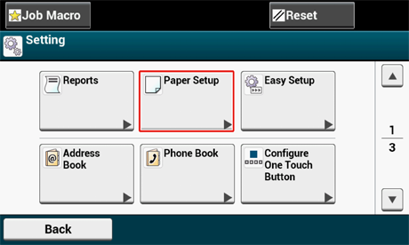 Pulse [Back (Atrás)] hasta que aparezca la pantalla [Paper Setup (Configuración del papel)].