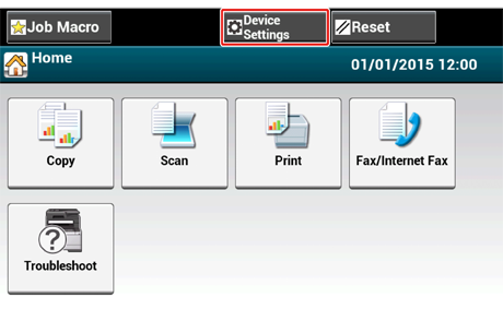 Pulse [Device Settings (Configuración de dispositivo)] en la pantalla táctil.