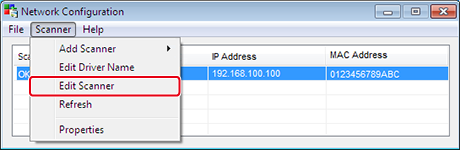 Select the scanner driver to change and select [Edit Scanner] from the [Scanner] menu.