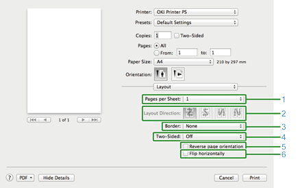 Angiver layout, der anvendes, når der udskrives flere sider på et ark papir. |