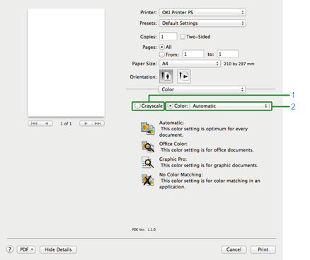 Angiver, om du skal bruge sort/hvid udskrivning. |